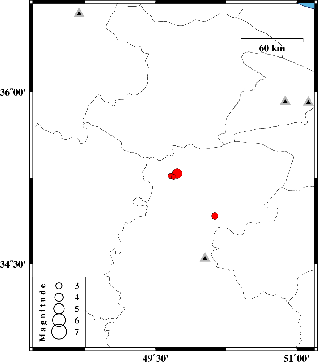 2013/10/16 | 22:14:40.0 | 01:44:40.0 | 34.92 | 50.13 | 14 | ML:3.3 | Markazi Province, 27 km North-East of Tafresh | ||