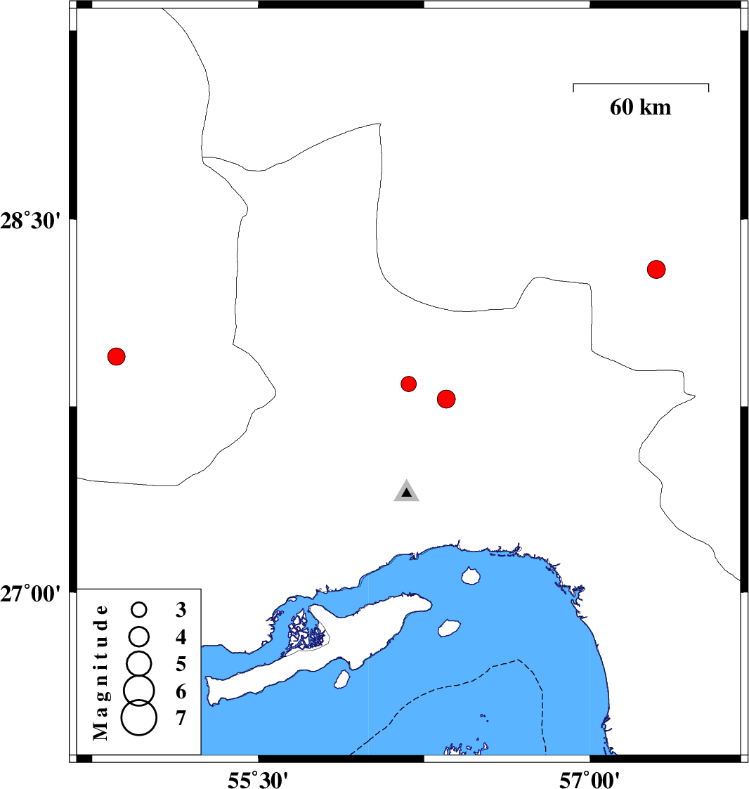 | 2013/10/12 | 08:18:18.1 | 11:48:18.1 | 27.95 | 54.86 | 14 | ML:3.5 | Fars Province, 59 km North-East of Lar |
