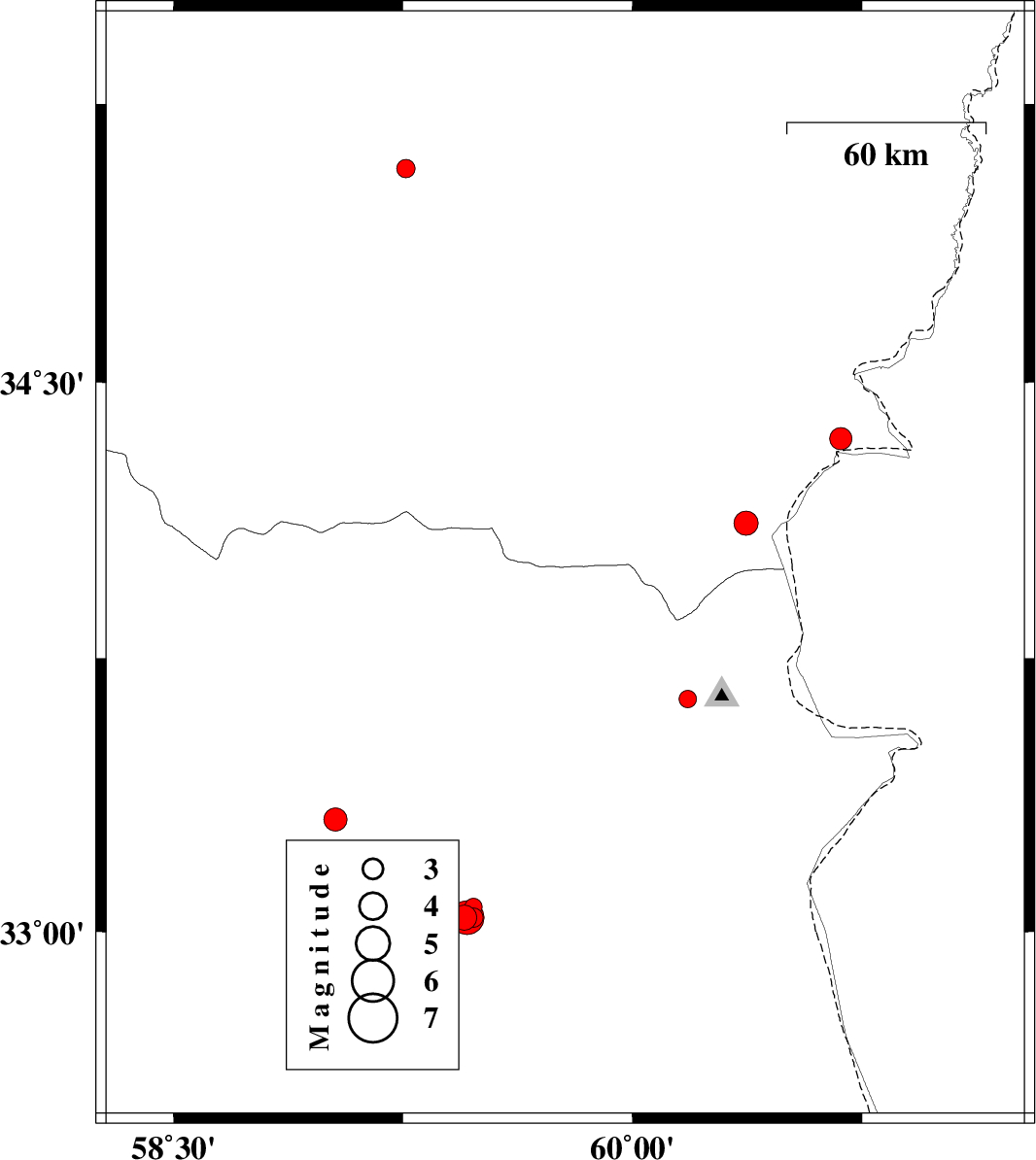 2013/10/05 | 15:56:27.1 | 19:26:27.1 | 32.92 | 58.85 | 14 | ML:2.9 | Khorasan(south) Province, 35 km West of Birjand | ||