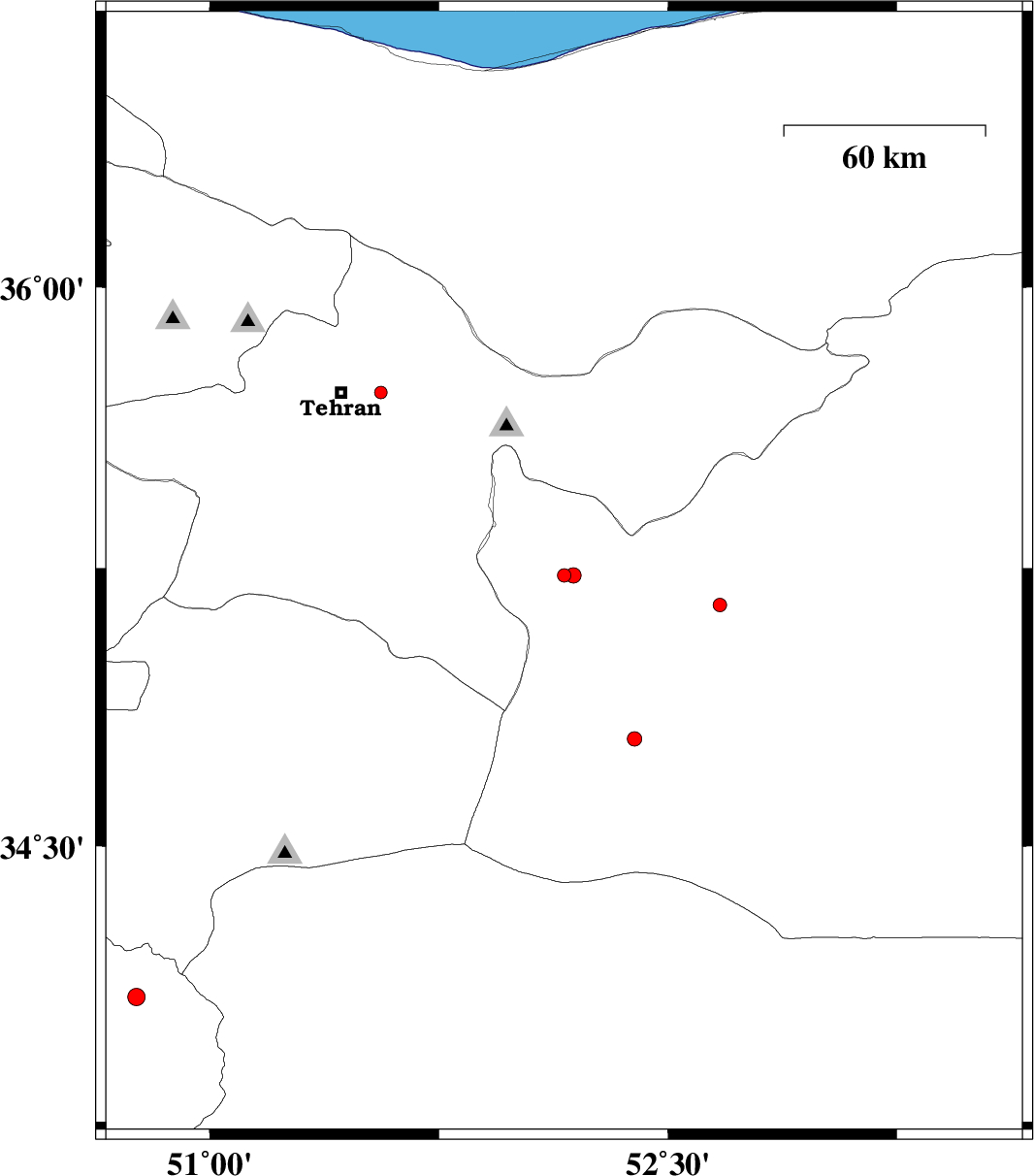2013/10/26 | 04:55:23.9 | 08:25:23.9 | 35.15 | 52.67 | 42 | ML:2 | Semnan Province, 31 km East of Garmsar |