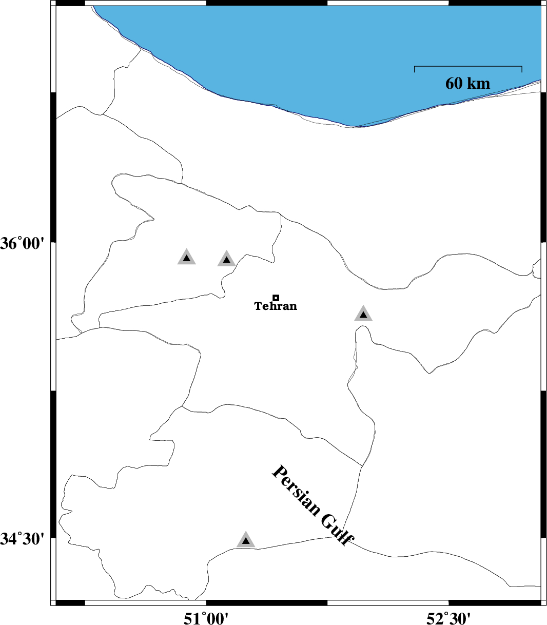 2013/10/29 | 04:55:51.7 | 08:25:51.7 | 35.25 | 52.23 | 18 | ML:2.3 | Semnan Province, 10 km West of Garmsar | ||