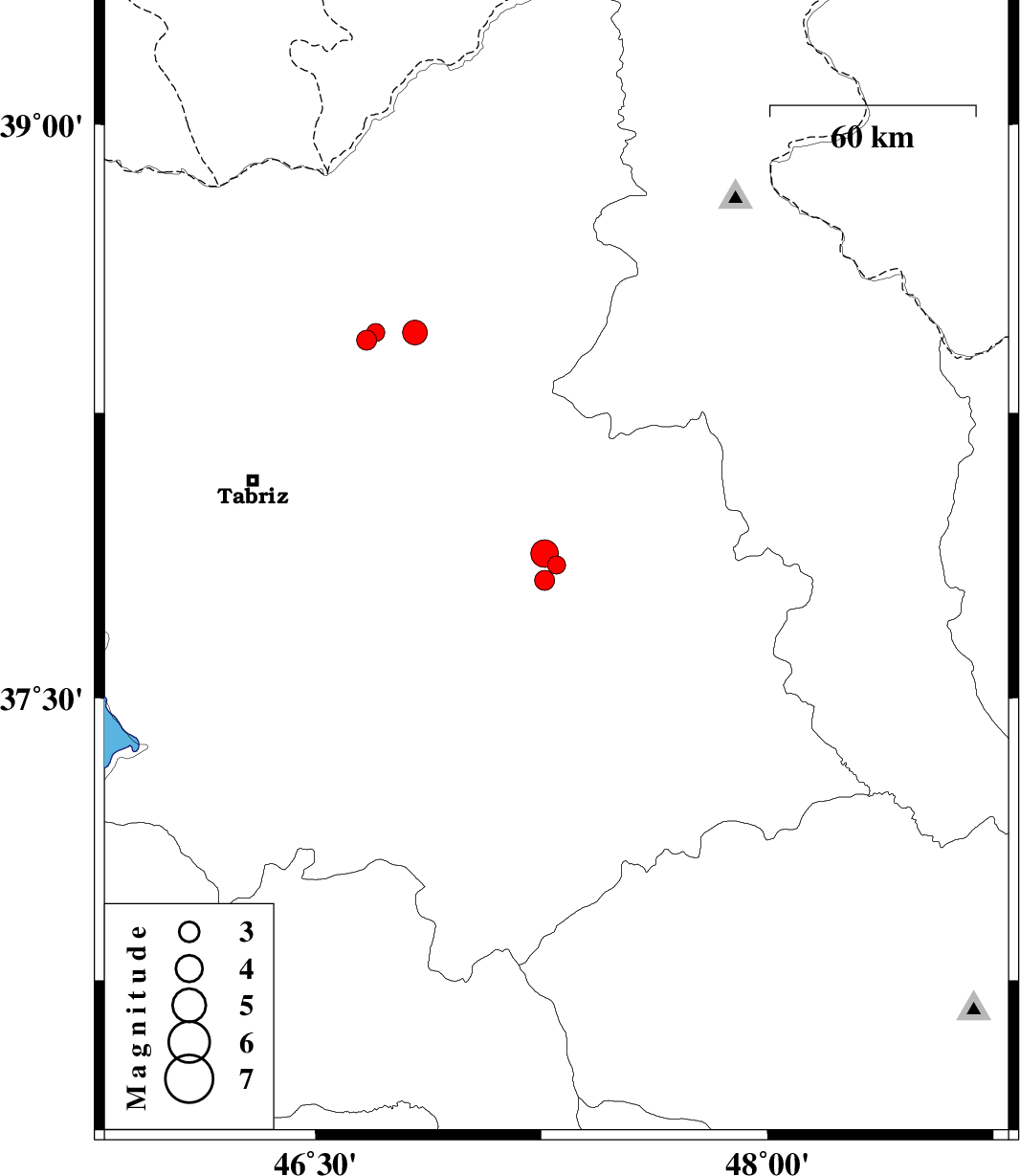 2013/11/05 | 03:29:34.6 | 06:59:34.6 | 37.85 | 47.3 | 16 | ML:2.7 | Azarbaijan Sharghi Province, 23 km West of Sarab | ||