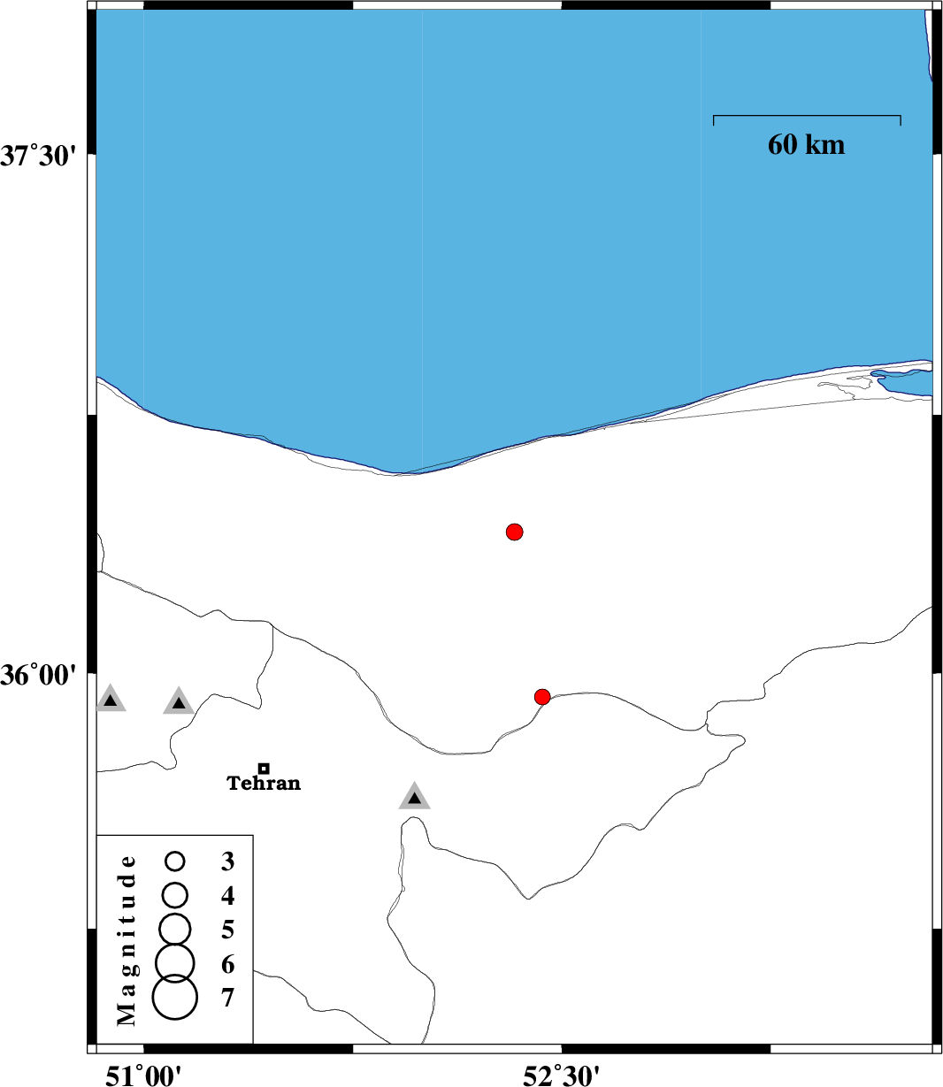 2013/11/03 | 09:36:52.3 | 13:06:52.3 | 35.93 | 52.43 | 14 | ML:2.5 | Mazandaran Province, 36 km North-West of Firuzkuh |
