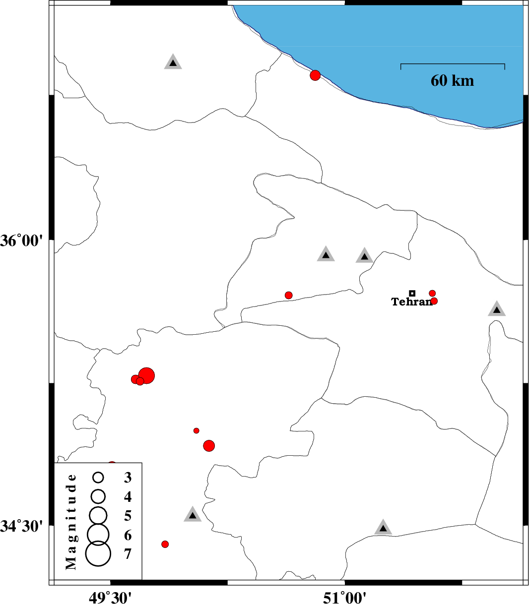 2013/11/09 | 04:09:09.5 | 07:39:09.5 | 35 | 50.05 | 6 | ML:1.6 | Markazi Province, 28 km West of Saveh | ||