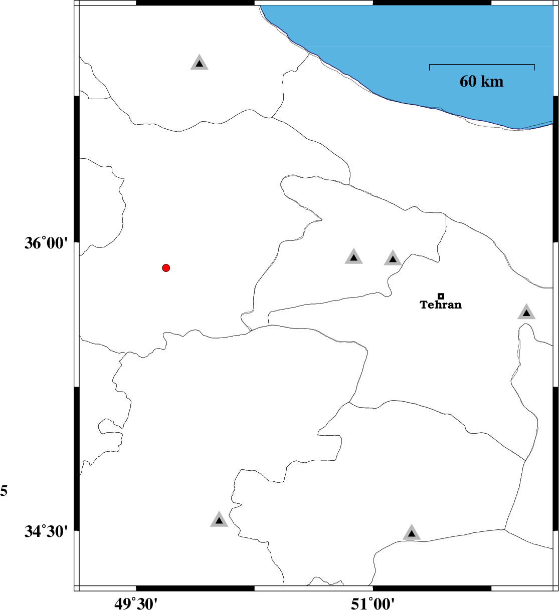 2013/11/11 | 07:04:12.0 | 10:34:12.0 | 35.71 | 50.64 | 14 | ML:2.1 | Tehran Province, 25 km South of Nazarabad-E-Bozorg | ||