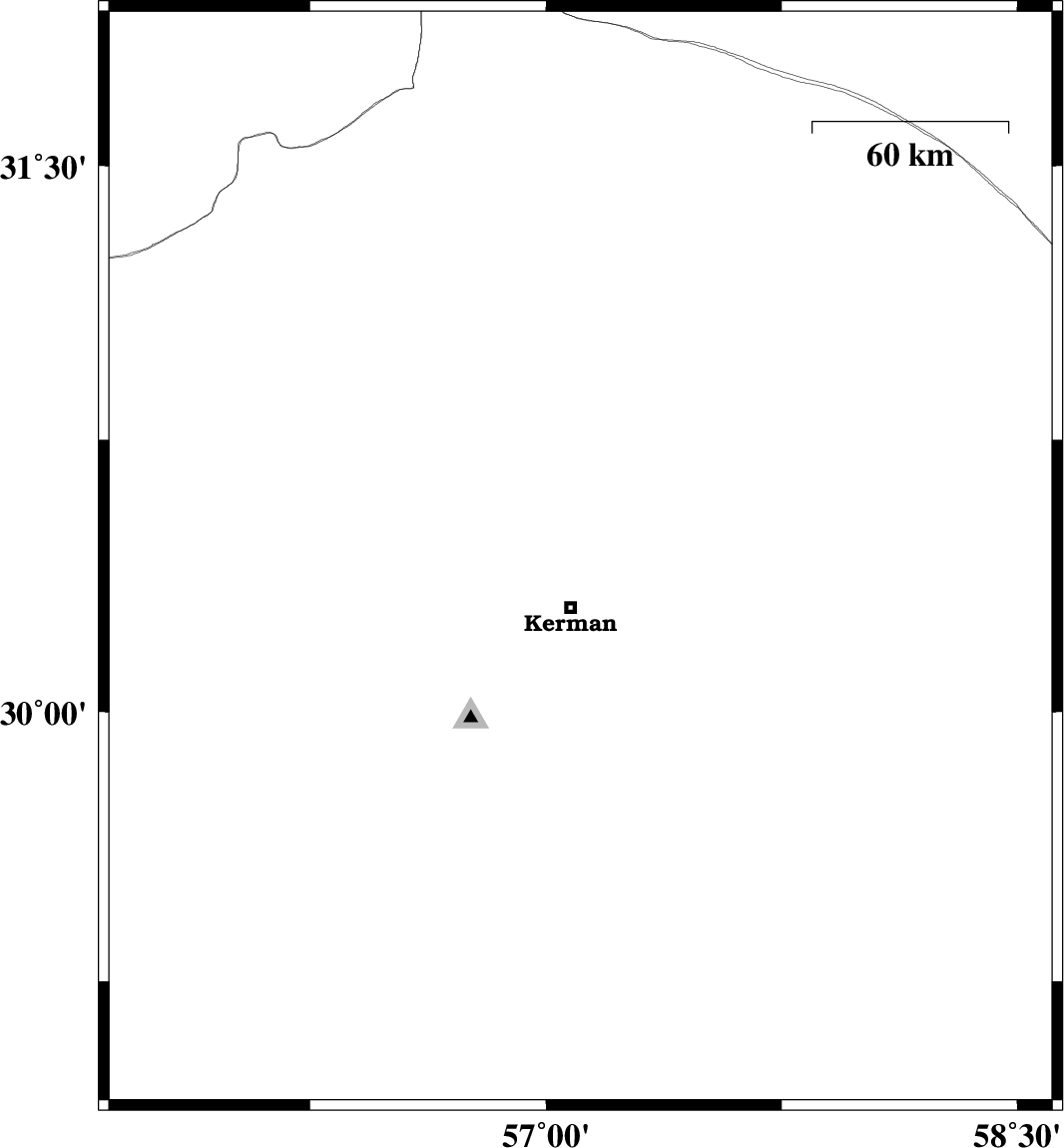 2013/10/28 | 23:00:58.3 | 02:30:58.3 | 30.13 | 57.49 | 14 | ML:2.8 | Kerman Province, 43 km South-East of Kerman | ||