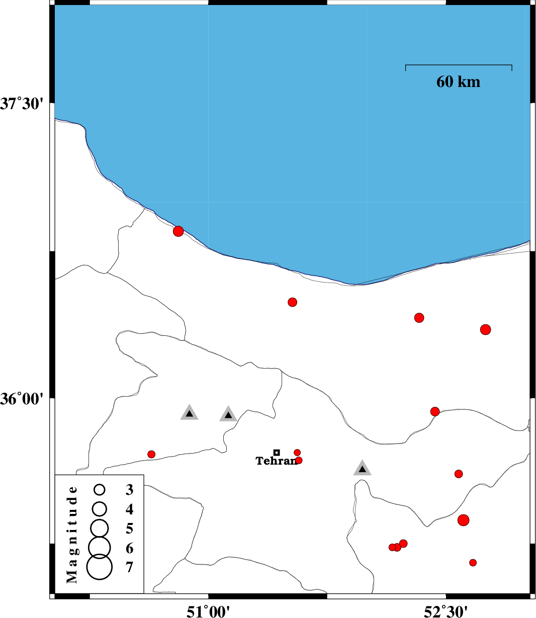 2013/10/29 | 04:55:51.7 | 08:25:51.7 | 35.25 | 52.23 | 18 | ML:2.3 | Semnan Province, 10 km West of Garmsar | ||