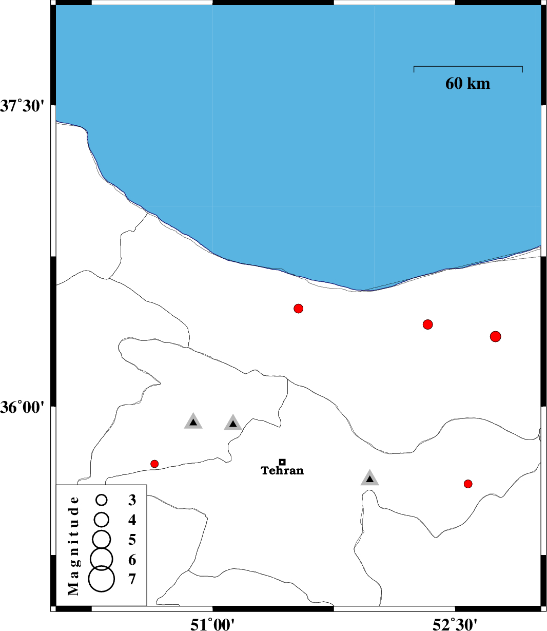 | 2013/11/11 | 07:04:12.0 | 10:34:12.0 | 35.71 | 50.64 | 14 | ML:2.1 | Tehran Province, 25 km South of Nazarabad-E-Bozorg | ||
