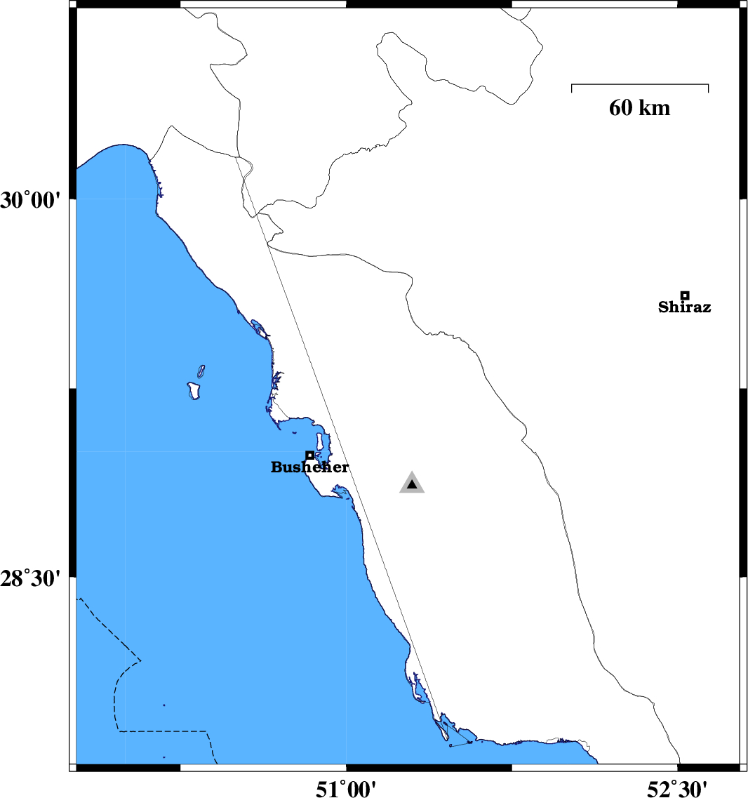 2013/11/29 | 18:46:04.3 | 22:16:04.3 | 29.12 | 51.29 | 15 | ML:3.2 | Bushehr Province, 18 km South of Borazjan | ||