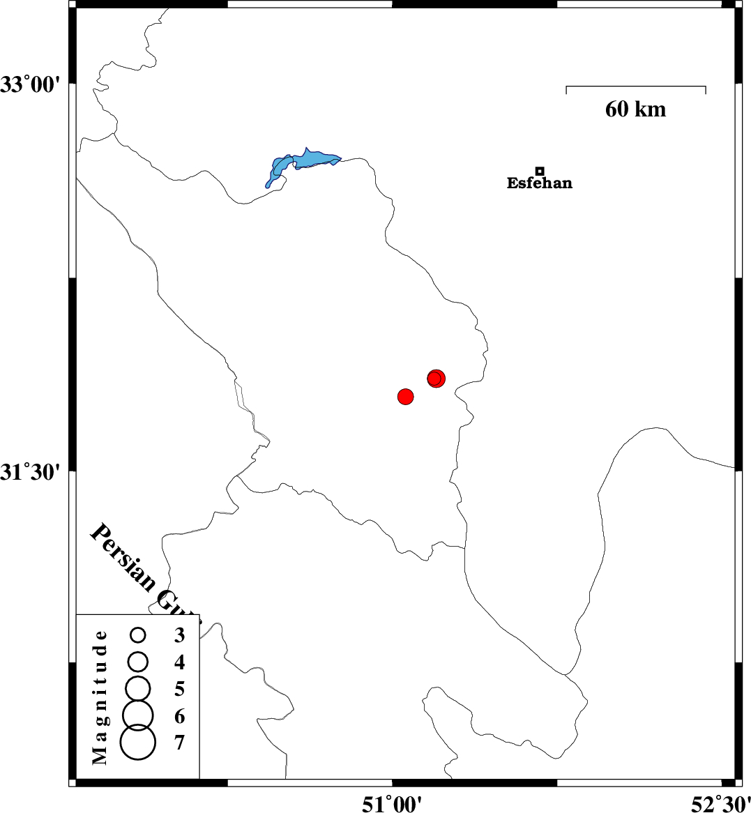 2013/11/15 | 18:50:47.9 | 22:20:47.9 | 31.86 | 51.2 | 14 | ML:3.7 | Chaharmahal Bakhtiari Province, 15 km South of Borujen |