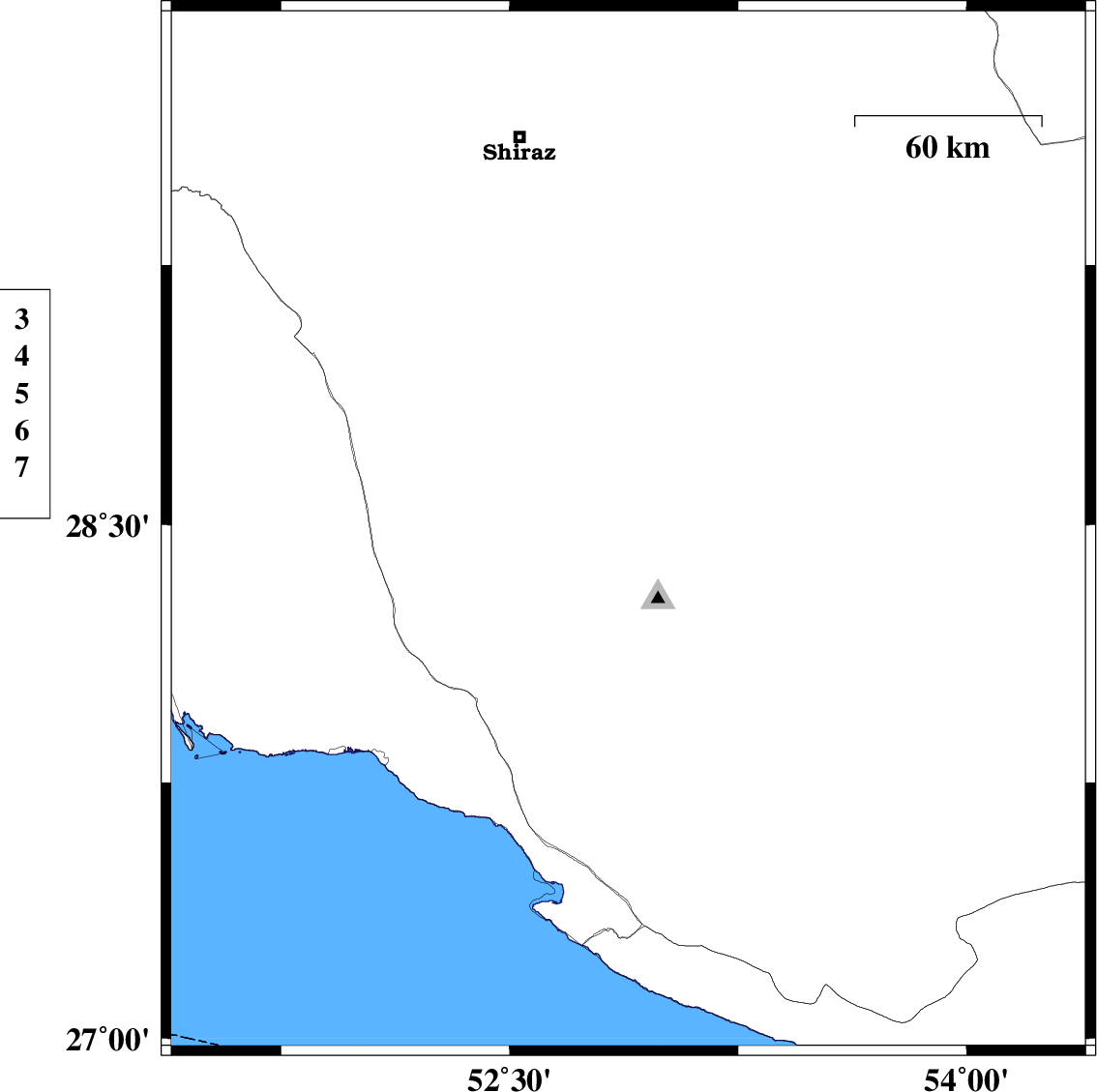 2013/11/29 | 06:05:06.6 | 09:35:06.6 | 29.2 | 51.42 | 15 | ML:4.1 | Bushehr Province, 22 km East of Borazjan |