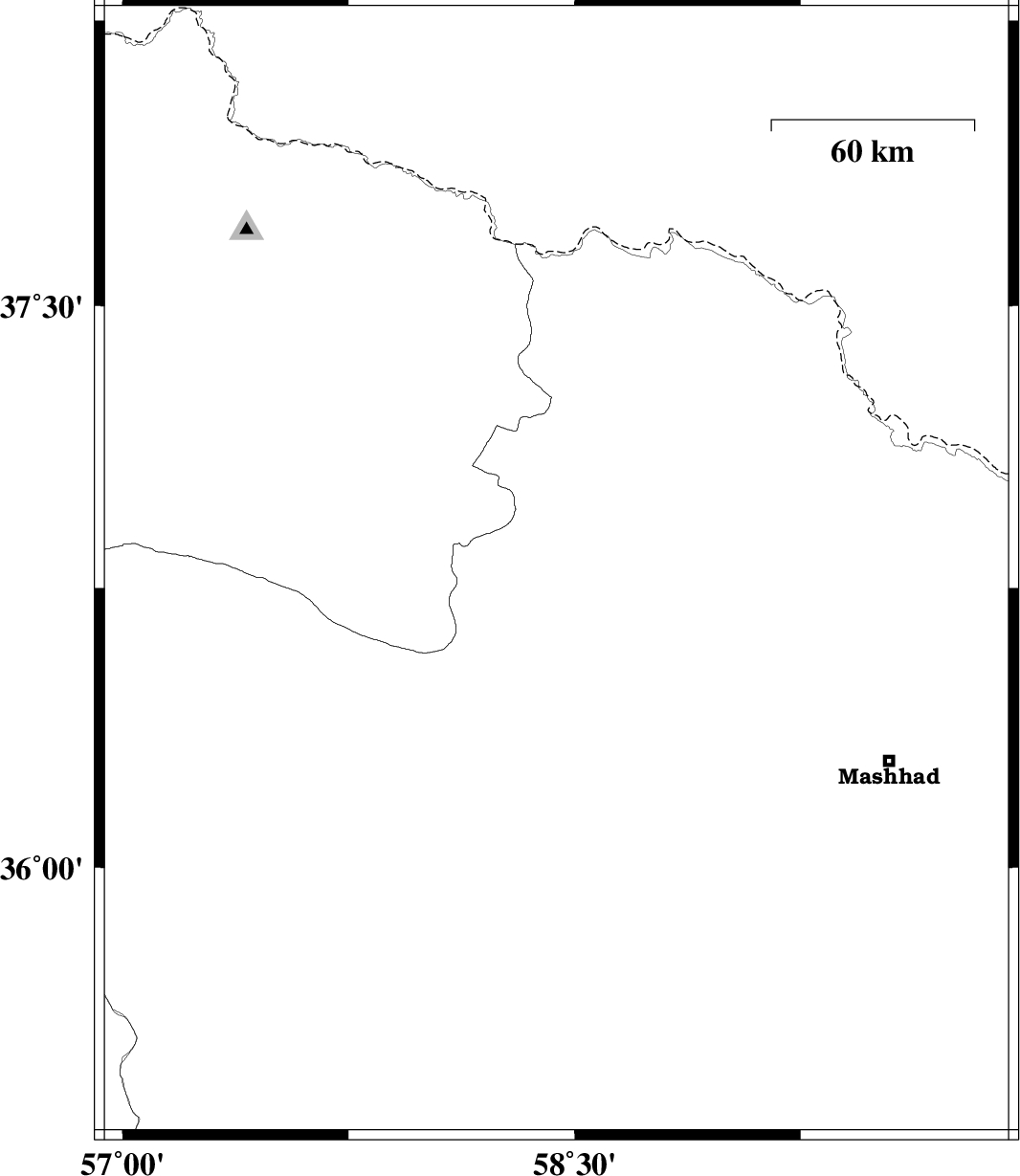 2013/12/07 | 23:12:42.5 | 02:42:42.5 | 36.79 | 58.44 | 14 | ML:4.2 | Khorasan(center) Province, 36 km South of Quchan |
