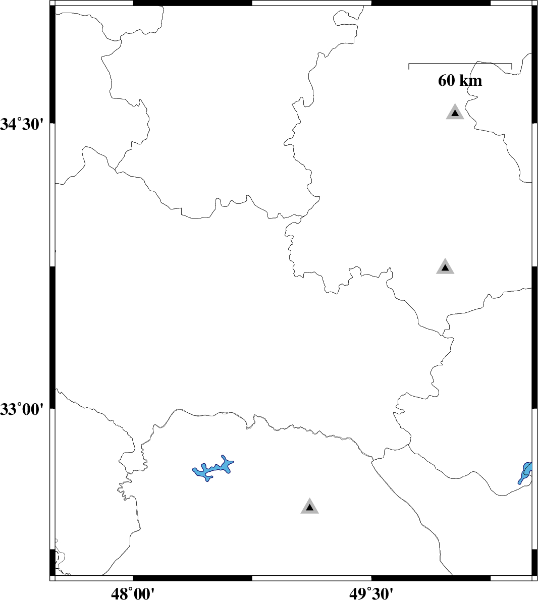 2013/11/27 | 19:33:47.8 | 23:03:47.8 | 33.32 | 48.52 | 14 | ML:2.9 | Lorestan Province, 23 km South-East of Khorramabad | ||