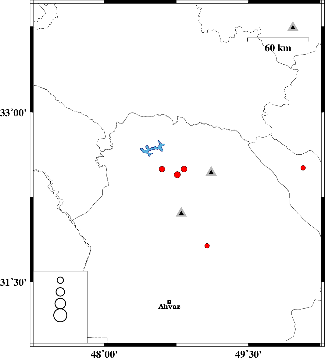 | 2014/01/03 | 02:44:02.9 | 06:14:02.9 | 31.82 | 49.07 | 17 | ML:2.3 | Khoozestan Province, 25 km South-West of Masjed Soleyman | ||