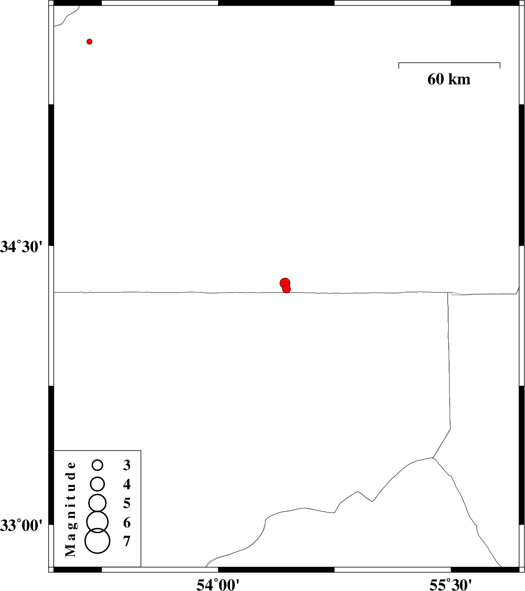 | 2013/12/31 | 22:41:16.6 | 02:11:16.6 | 35.58 | 53.17 | 46 | ML:1.6 | Semnan Province, 21 km West of Semnan |