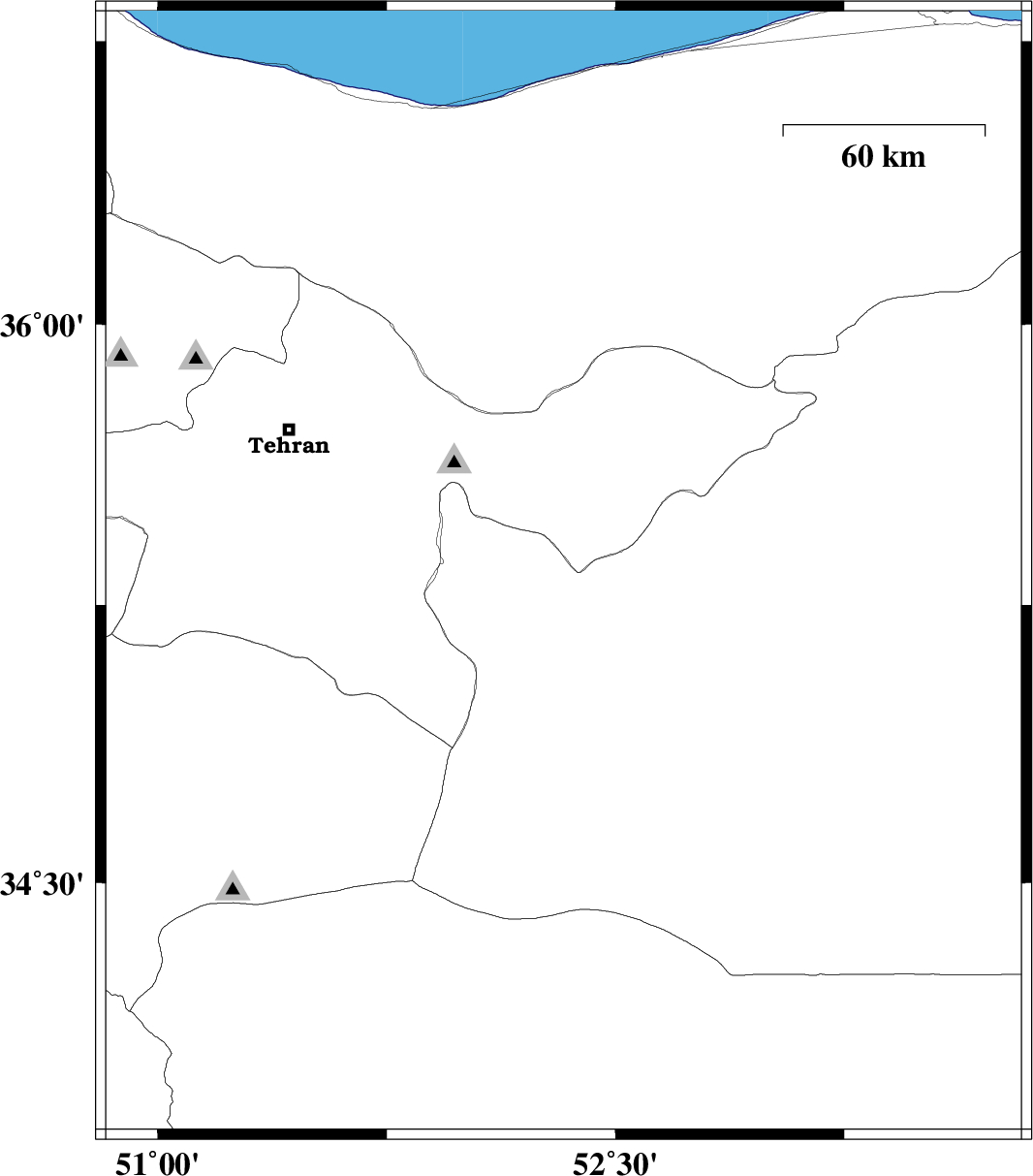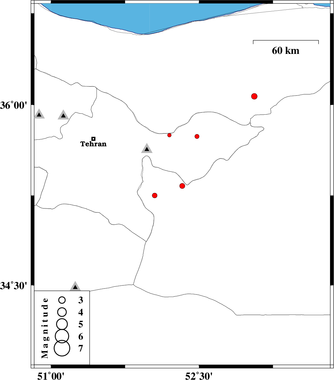 | 2014/01/09 | 16:30:14.6 | 20:00:14.6 | 35.33 | 52.33 | 6 | ML:2.4 | Semnan Province, 12 km North of Garmsar | ||