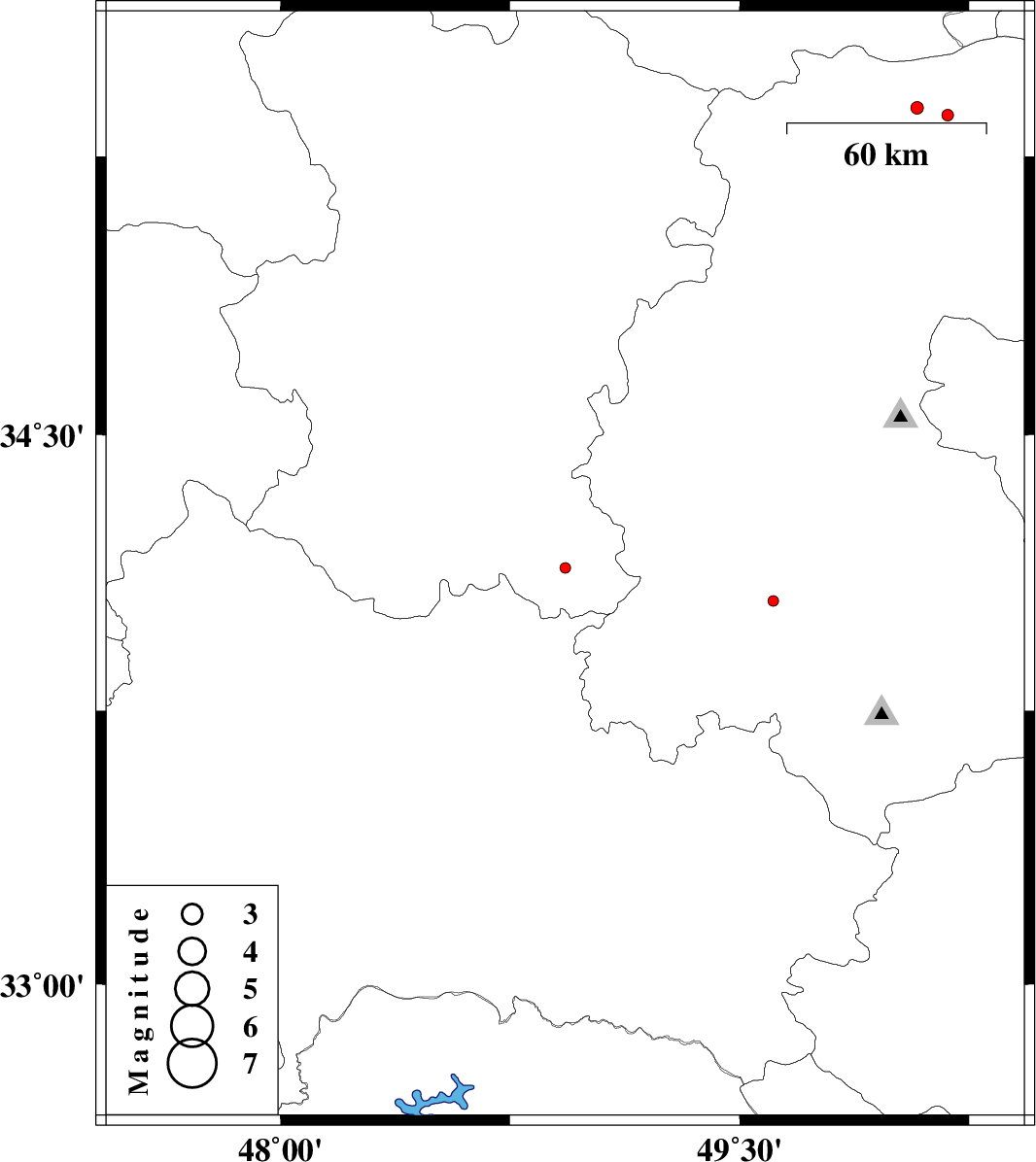 2014/01/06 | 11:13:40.1 | 14:43:40.1 | 35.36 | 50.18 | 14 | ML:1.7 | Markazi Province, 41 km North-West of Saveh |