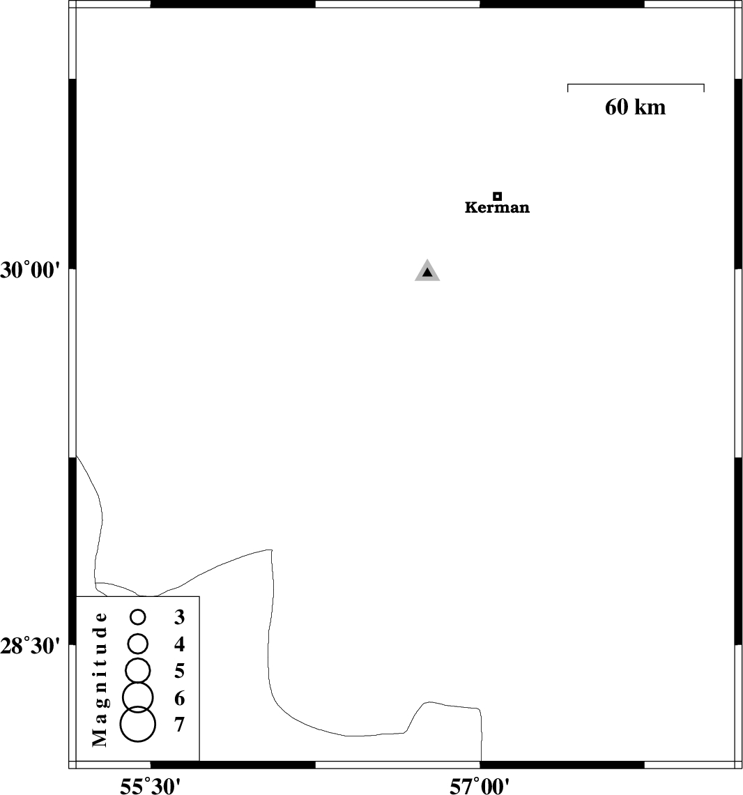| 2014/01/11 | 19:05:30.2 | 22:35:30.2 | 29.53 | 56.66 | 14 | ML:3.6 | Kerman Province, 33 km North of Baft |