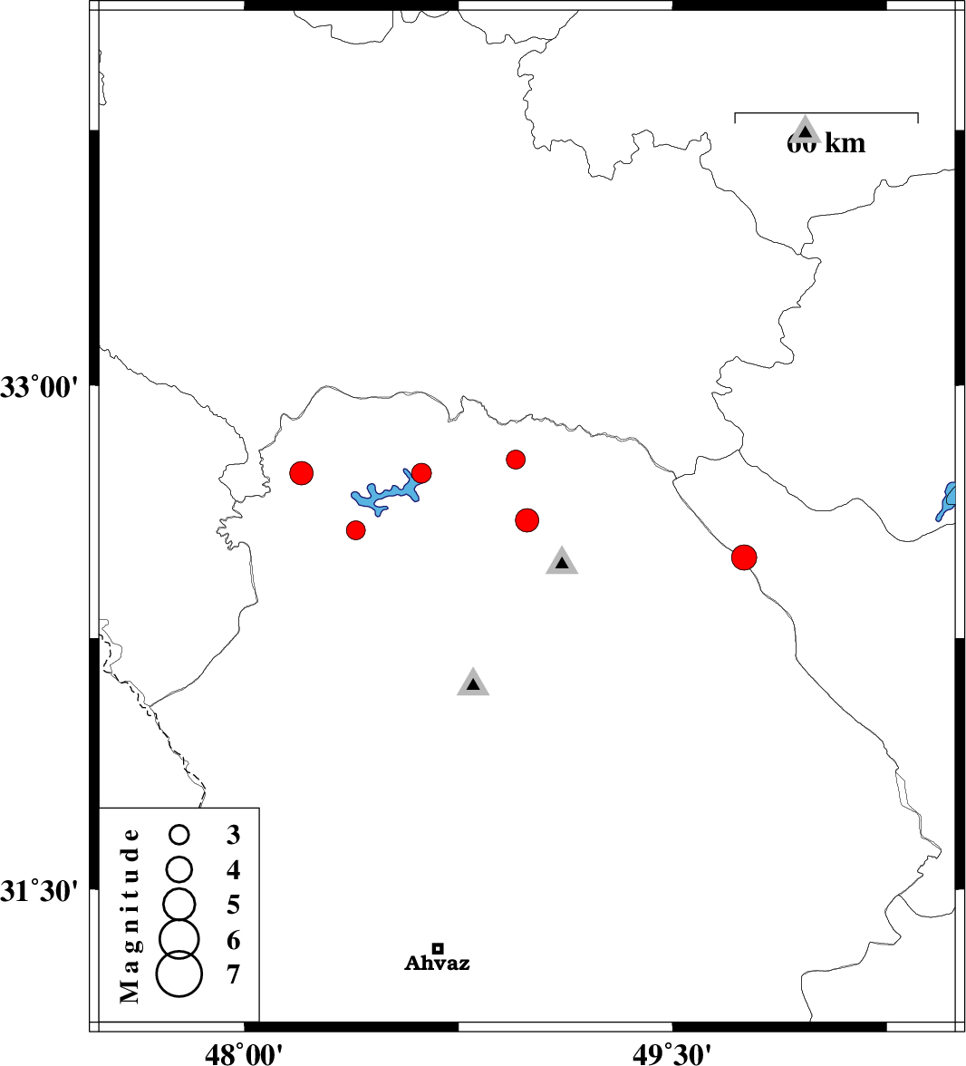 | 2014/01/13 | 06:18:19.5 | 09:48:19.5 | 32.57 | 48.39 | 14 | ML:3 | Khoozestan Province, 13 km North of Andimeshk | ||