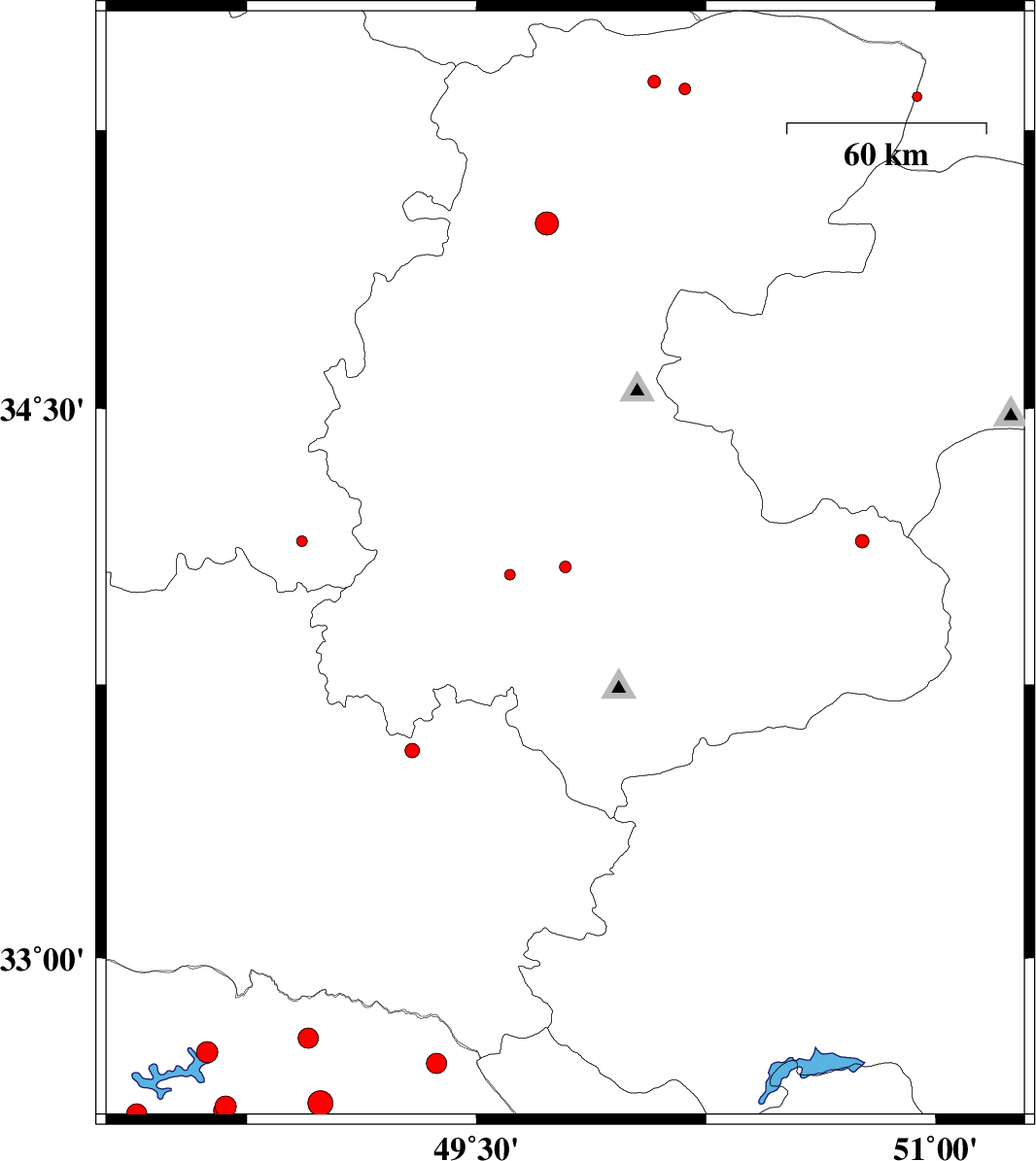 2014/01/19 | 11:26:34.9 | 14:56:34.9 | 34.07 | 49.79 | 15 | ML:1.7 | Markazi Province, 10 km East of Arak | ||