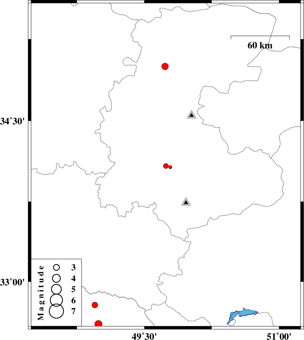 | 2014/01/19 | 11:26:34.9 | 14:56:34.9 | 34.07 | 49.79 | 15 | ML:1.7 | Markazi Province, 10 km East of Arak | ||