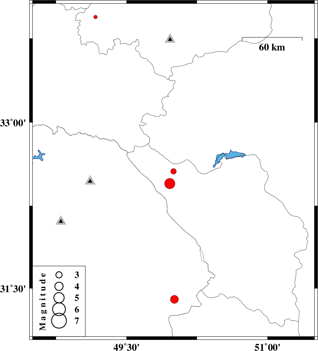 2014/01/28 | 23:47:36.5 | 03:17:36.5 | 32.45 | 49.96 | 29 | ML:4.9 | Chaharmahal Bakhtiari Province, 15 km West of Chelgard | ||