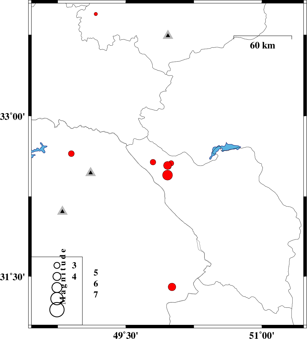 2014/01/28 | 23:47:36.5 | 03:17:36.5 | 32.45 | 49.96 | 29 | ML:4.9 | Chaharmahal Bakhtiari Province, 15 km West of Chelgard | ||