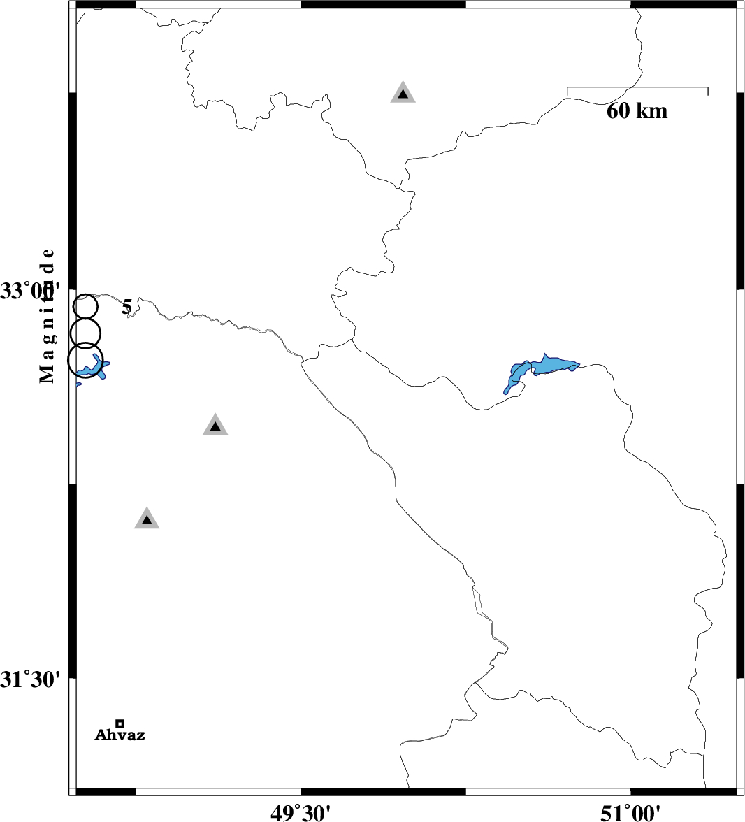 2014/01/06 | 08:00:39.8 | 11:30:39.8 | 32.45 | 48.76 | 14 | ML:2.9 | Khoozestan Province, 33 km West of Lali | ||
