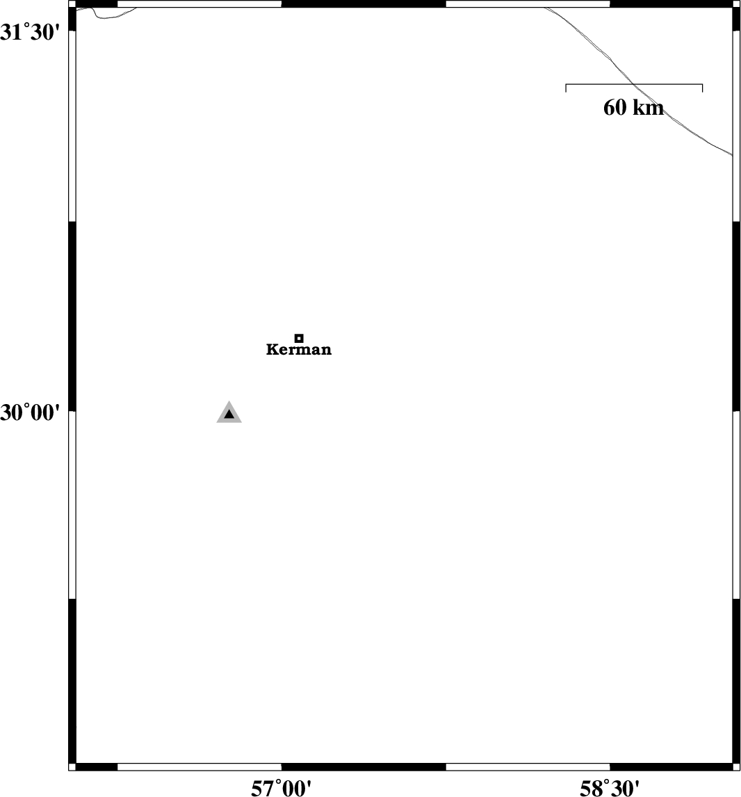 2014/01/24 | 17:11:36.5 | 20:41:36.5 | 29.46 | 58.26 | 37 | ML:2.5 | Kerman Province, 40 km North of Bam |