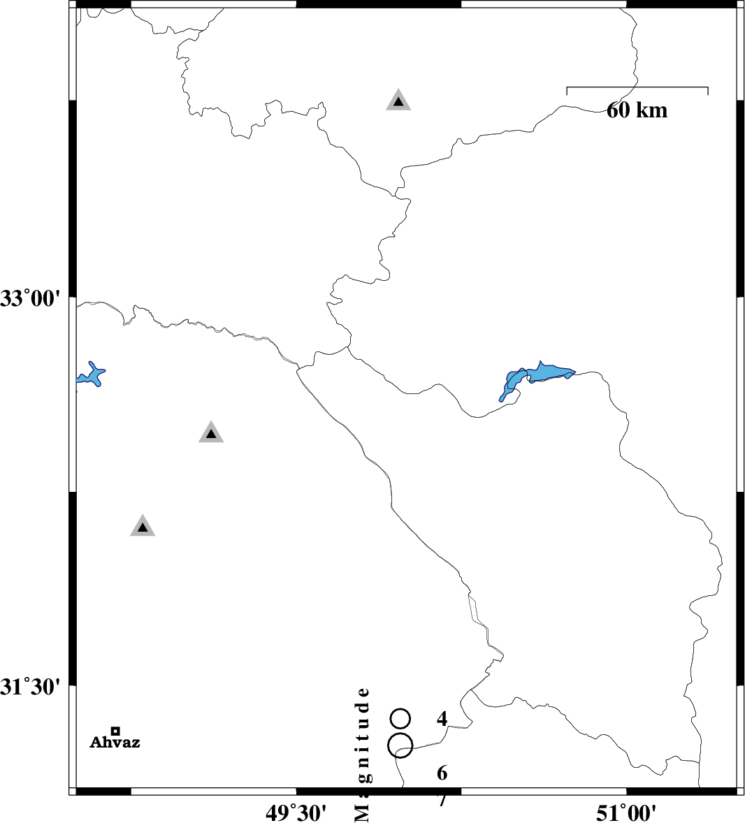 2014/01/26 | 22:57:33.6 | 02:27:33.6 | 31.4 | 50.01 | 16 | ML:3.8 | Khoozestan Province, 17 km South-East of Bagh Malek |