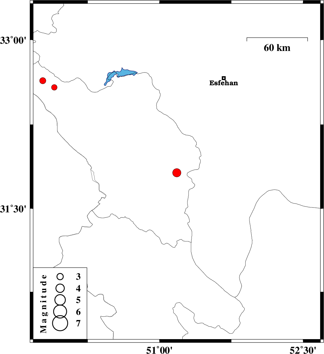 | 2014/02/13 | 11:47:36.5 | 15:17:36.5 | 31.82 | 51.18 | 14 | ML:4 | Chaharmahal Bakhtiari Province, 19 km South-West of Borujen | ||