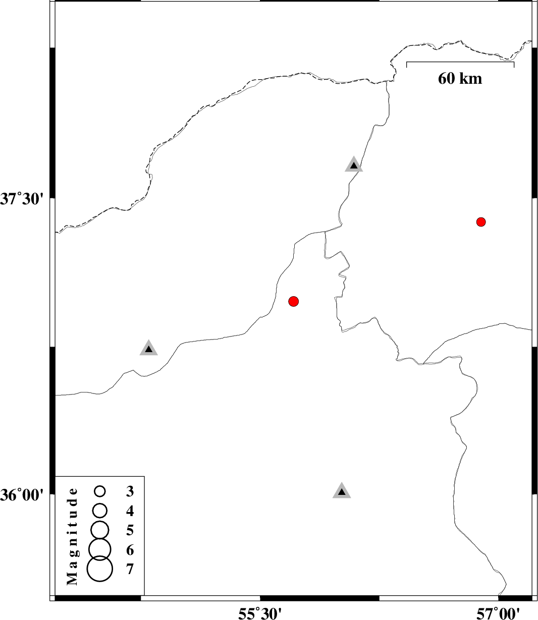 2014/02/15 | 07:58:03.0 | 11:28:03.0 | 37.38 | 56.89 | 18 | ML:2.5 | Khorasan(north) Province, 19 km South of Ashkhaneh |