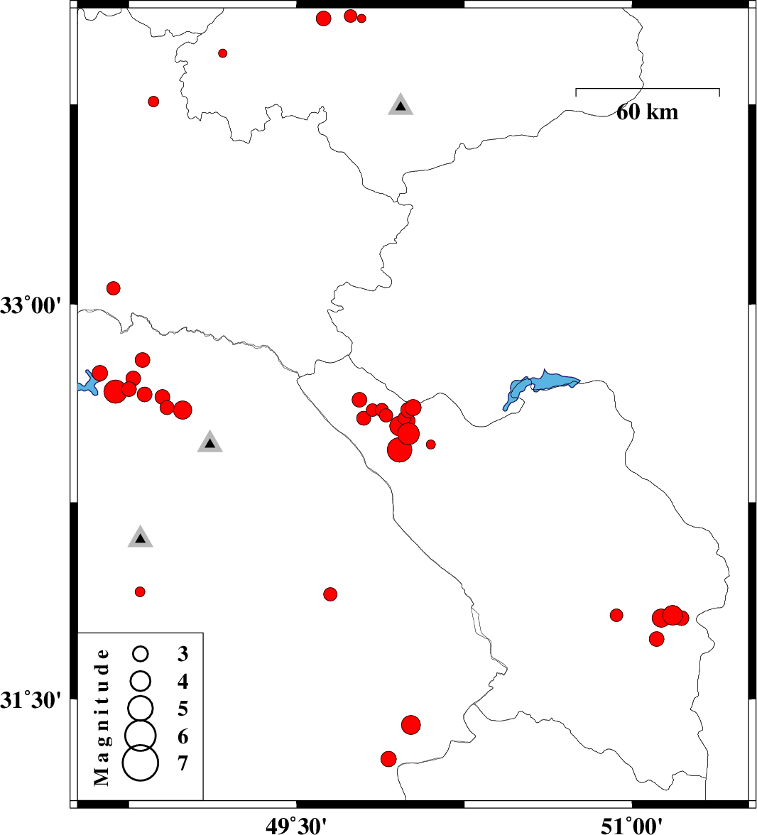2014/02/02 | 19:21:48.3 | 22:51:48.3 | 32.6 | 50 | 6 | ML:3.1 | Chaharmahal Bakhtiari Province, 19 km North-West of Chelgard | ||