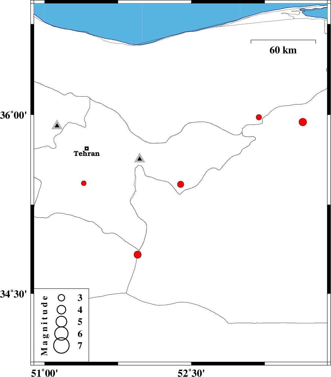 2014/02/17 | 23:34:50.4 | 03:04:50.4 | 35.94 | 53.64 | 14 | ML:3.5 | Semnan Province, 47 km North-East of Semnan | ||
