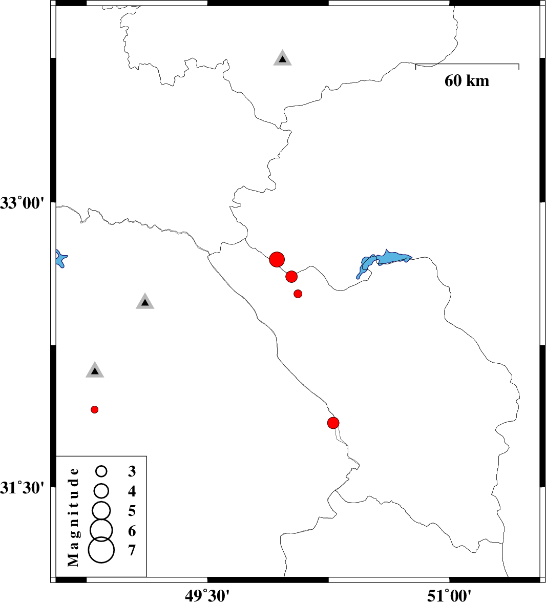 2014/02/20 | 04:18:37.6 | 07:48:37.6 | 32.7 | 49.93 | 18 | ML:4.3 | Esfahan Province, 32 km South-West of Fereydunshahr | ||