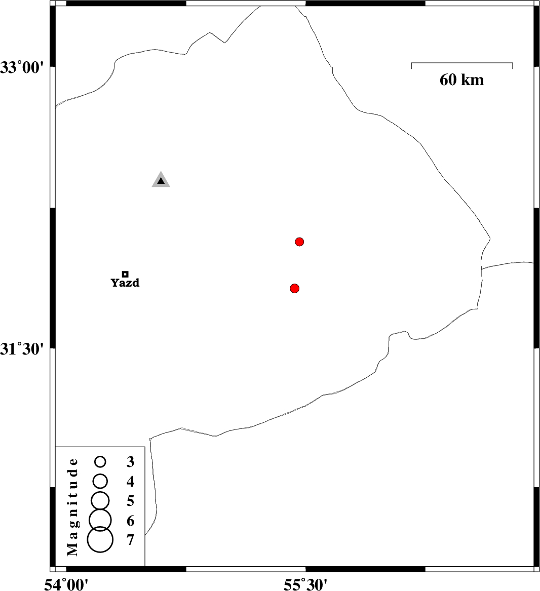 | 2014/02/23 | 13:42:09.7 | 17:12:09.7 | 31.82 | 55.43 | 15 | ML:2.5 | Yazd Province, 24 km North of Bafq | ||