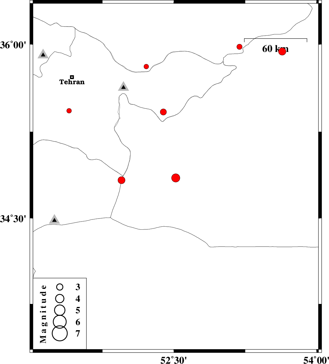 | 2014/03/02 | 00:57:47.4 | 04:27:47.4 | 34.85 | 52.52 | 14 | ML:3.9 | Semnan Province, 45 km South-East of Garmsar | ||