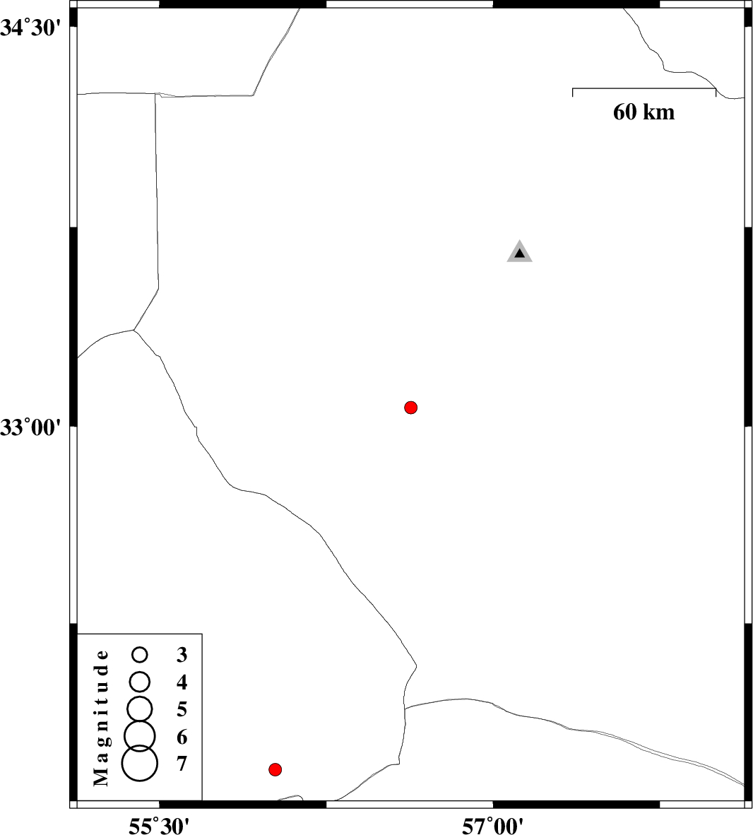 | 2014/03/03 | 07:09:34.4 | 10:39:34.4 | 33.07 | 56.63 | 15 | ML:2.5 | Yazd Province, 65 km South-West of Tabas | ||