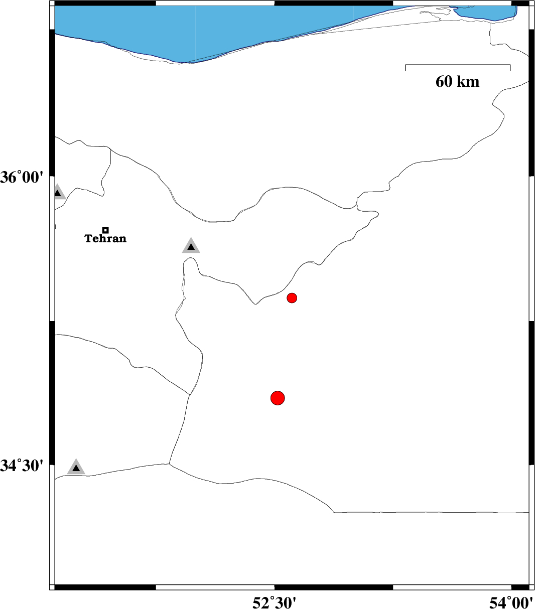 | 2014/03/02 | 00:57:47.4 | 04:27:47.4 | 34.85 | 52.52 | 14 | ML:3.9 | Semnan Province, 45 km South-East of Garmsar |