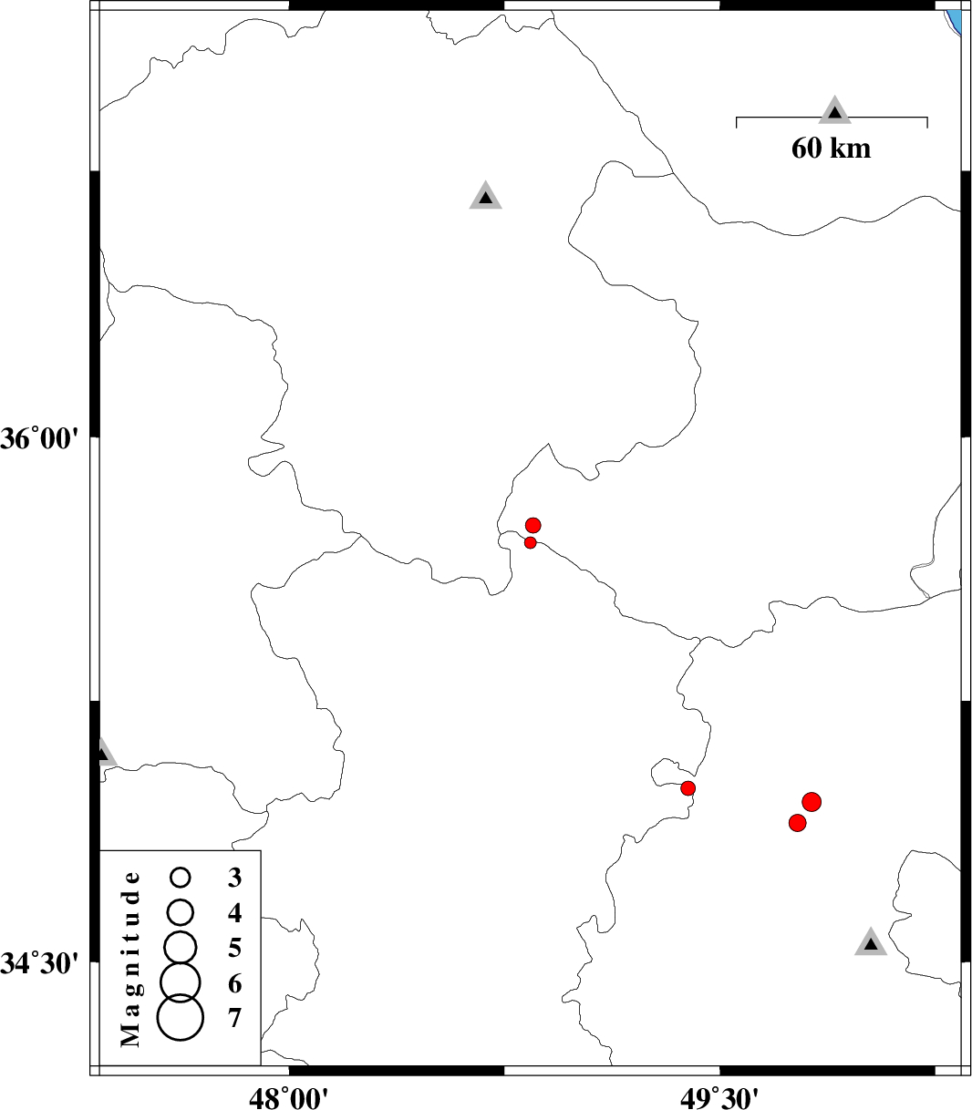 2014/03/06 | 01:48:02.4 | 05:18:02.4 | 34.96 | 49.82 | 16 | ML:3 | Markazi Province, 35 km North-West of Tafresh | ||