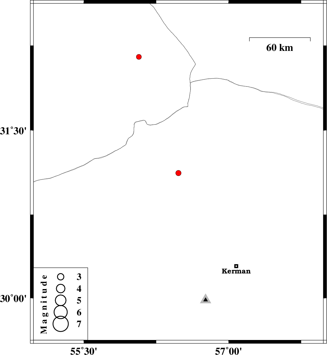 2014/03/06 | 20:13:53.6 | 23:43:53.6 | 32.15 | 56.07 | 15 | ML:2.4 | Yazd Province, 88 km North-East of Bafq |
