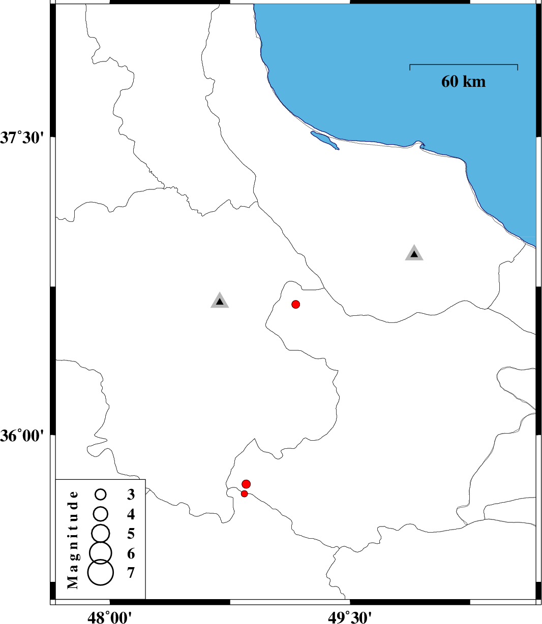 2014/03/10 | 16:10:09.4 | 19:40:09.4 | 36.66 | 49.16 | 28 | ML:2.3 | Ghazvin Province, 30 km South-West of Rudbar | ||