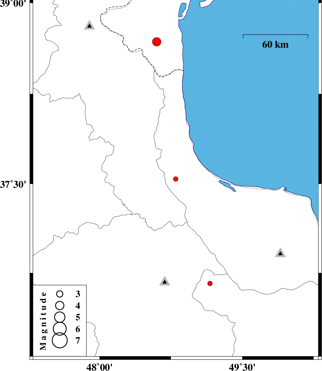 2014/03/15 | 02:20:53.7 | 05:50:53.7 | 38.68 | 48.6 | 14 | ML:4.1 | Azerbaijan, 30 km North-East of Namin | ||