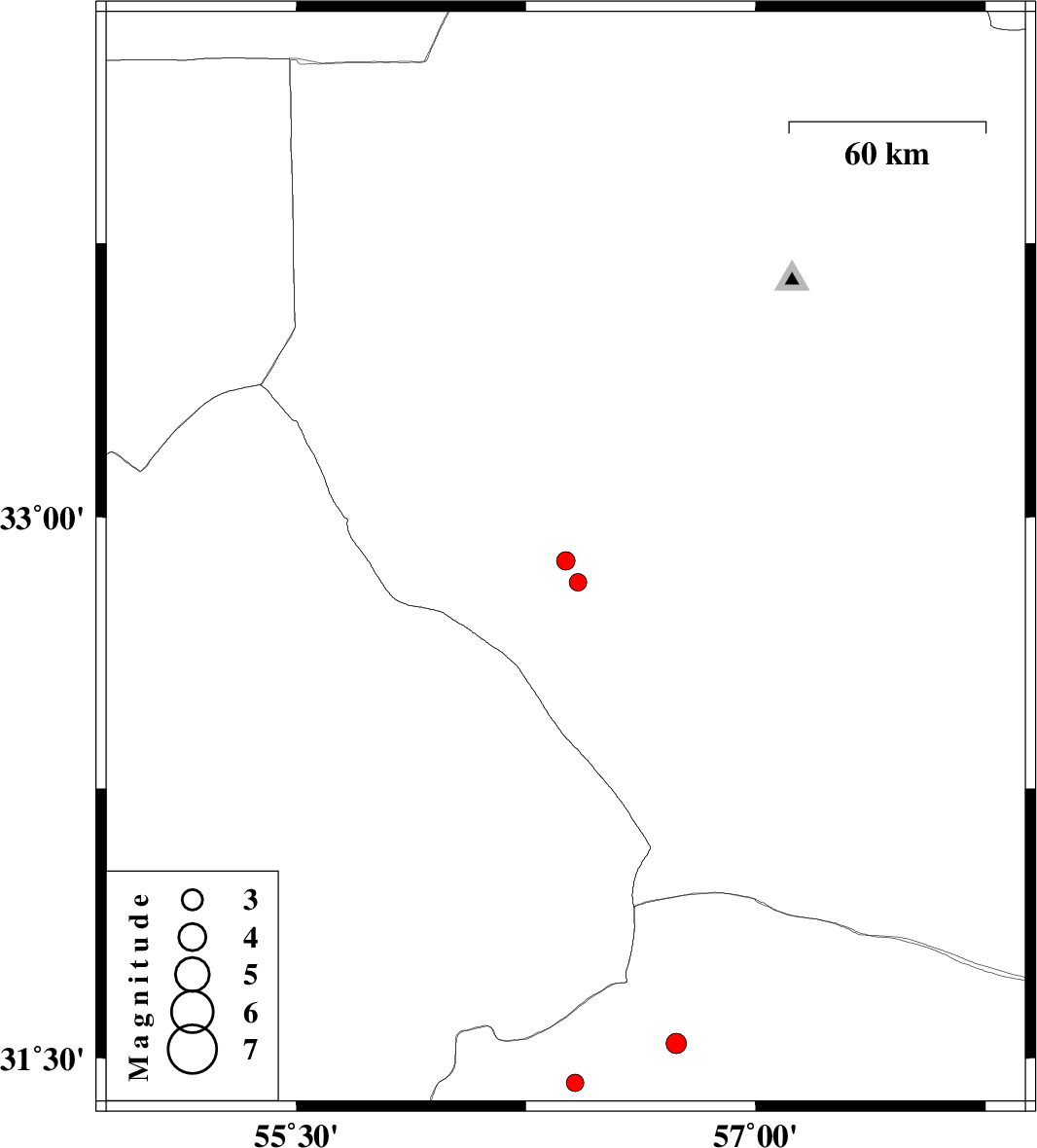 2014/03/17 | 04:42:01.4 | 08:12:01.4 | 32.88 | 56.38 | 18 | ML:2.7 | Yazd Province, 94 km South-West of Tabas | ||