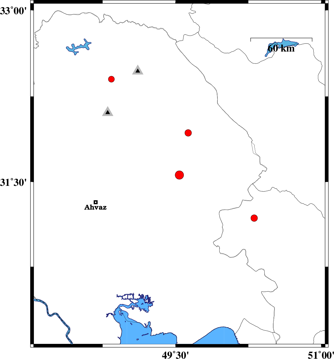 2014/03/19 | 15:59:55.2 | 19:29:55.2 | 32.4 | 48.84 | 15 | ML:2.8 | Khoozestan Province, 25 km West of Lali | ||