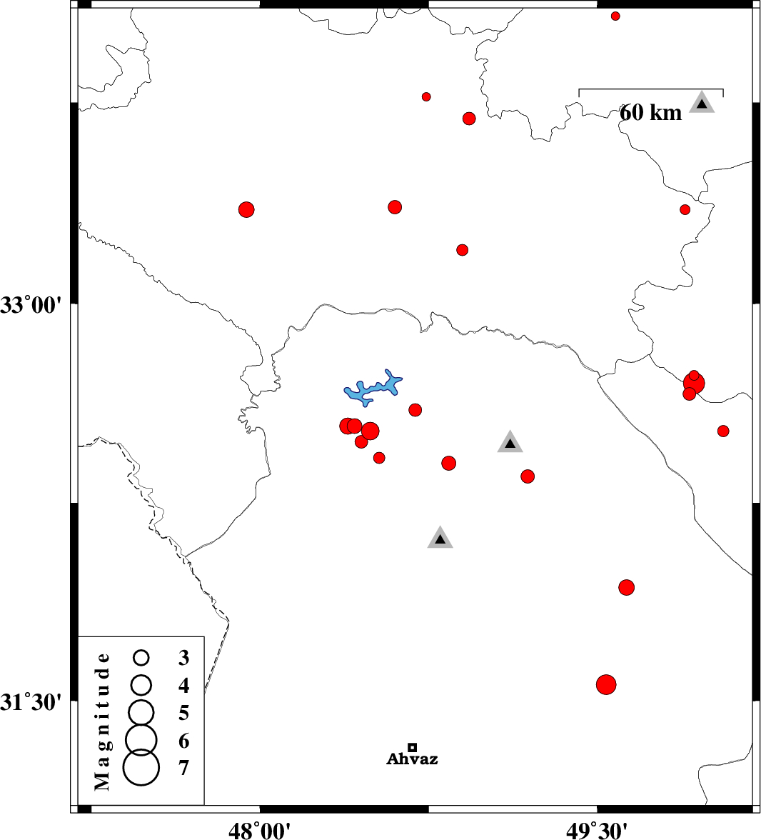 2014/03/12 | 03:41:53.9 | 07:11:53.9 | 32.52 | 48.49 | 14 | ML:3.5 | Khoozestan Province, 14 km East of Andimeshk | ||