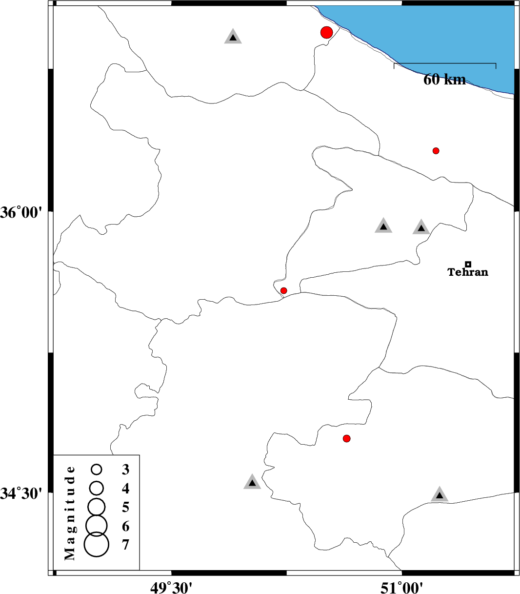 | 2014/03/20 | 11:13:22.5 | 14:43:22.5 | 36.94 | 50.51 | 31 | ML:3.5 | Gilan Province, 13 km West of Ramsar |