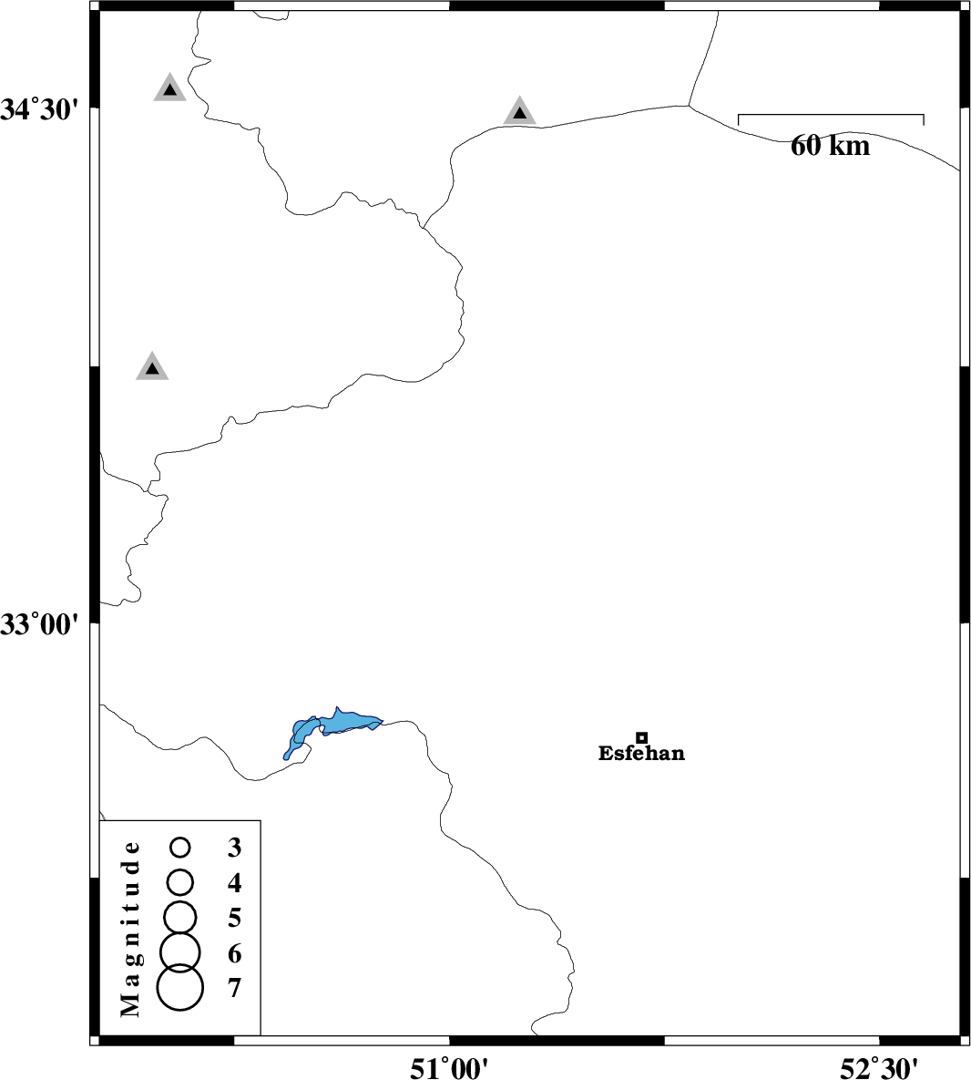 2014/03/27 | 01:09:18.6 | 05:39:18.6 | 33.28 | 51.28 | 18 | ML:1.9 | Esfahan Province, 66 km North-East of Tiran |
