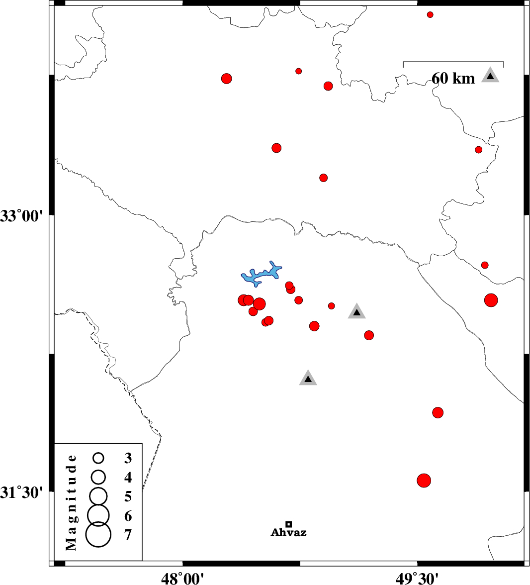 2014/03/02 | 05:50:20.6 | 09:20:20.6 | 33.69 | 48.93 | 15 | ML:2.6 | Lorestan Province, 27 km North-West of Dorud |