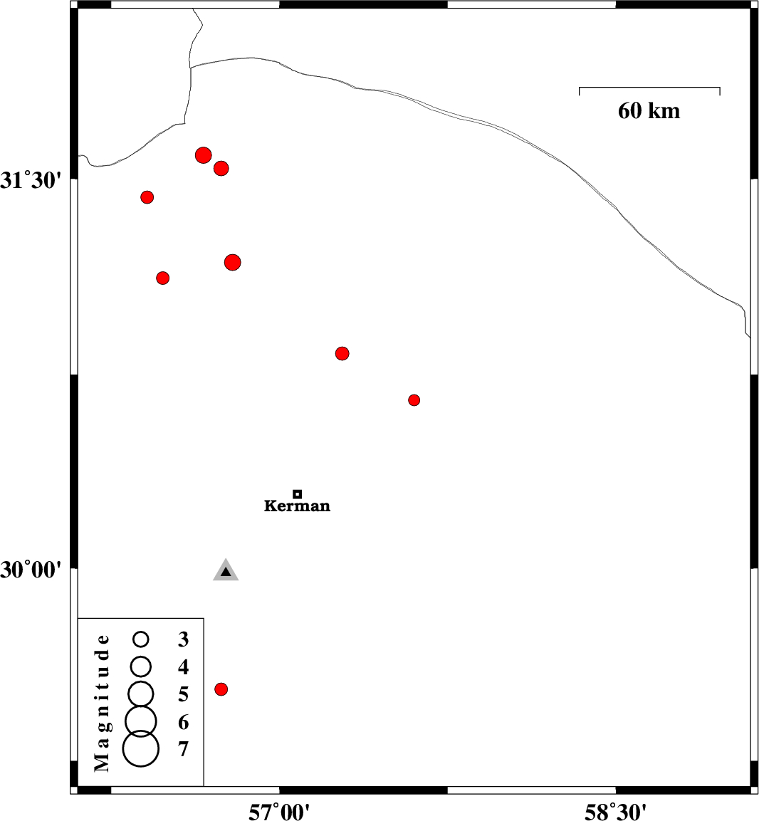 2014/03/09 | 05:07:05.0 | 08:37:05.0 | 30.83 | 57.28 | 16 | ML:2.7 | Kerman Province, 68 km East of Zarand | ||